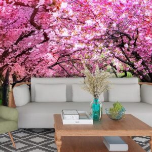 3D Effect Cherry Blossom Trees 3D Wallpaper for Living Room