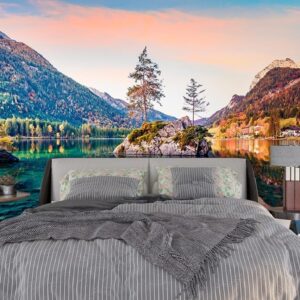 3D Effect Lake With Rocks and Trees Scenery Wallpaper