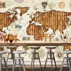 3D-Wallpaper Retro Personality World Map Red Wine Oak Bar Wallpaper