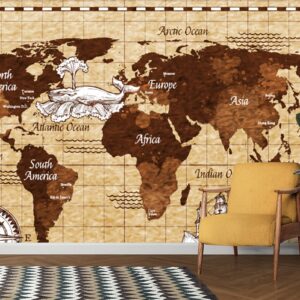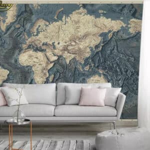 3D wallpaper mural retro vintage world maps tranding design by office