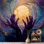 Be the first to review “Abstract Ethereal Purple Teal And Gold Gratitude Hands Sun Wallpaper for Wall” Cancel reply