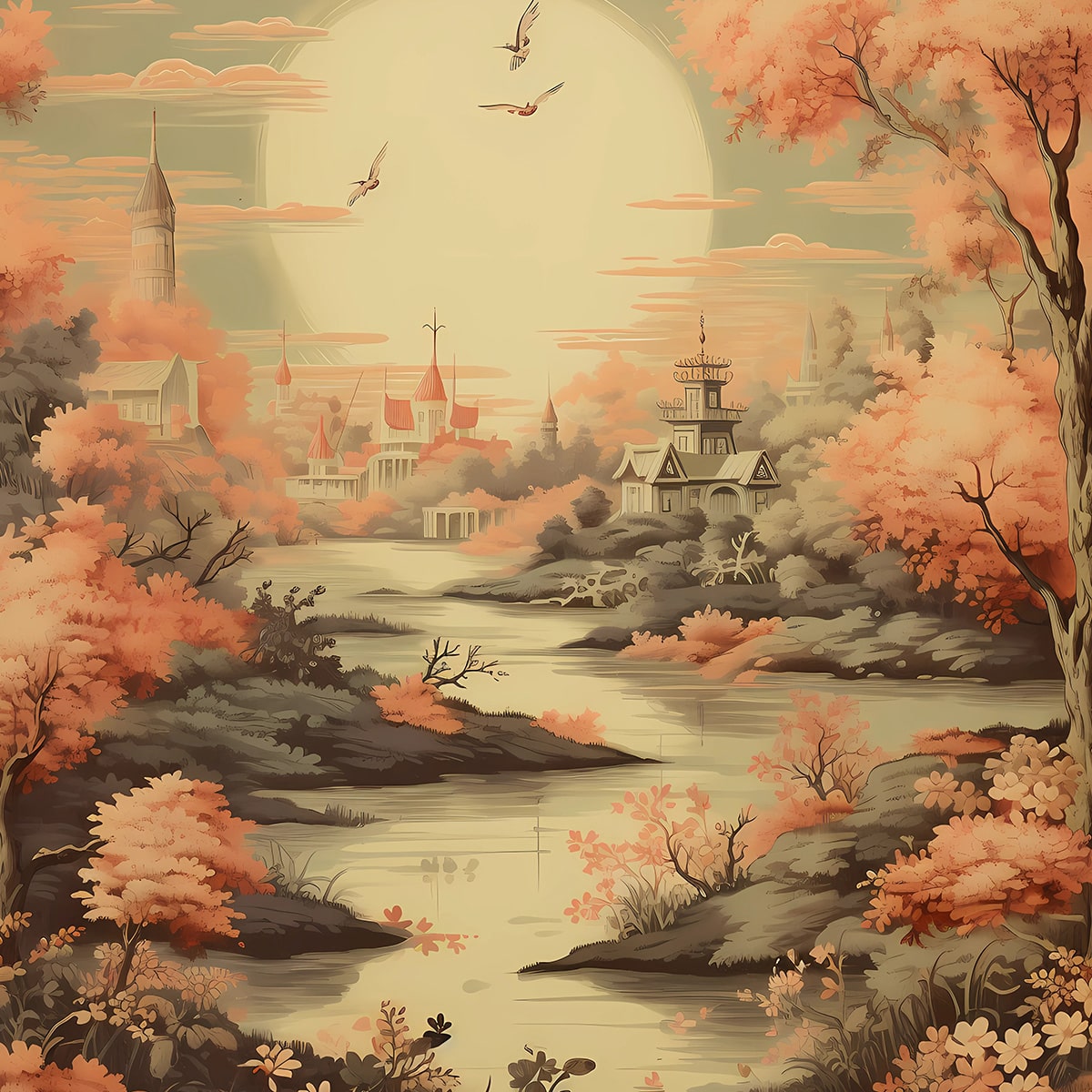 Beautiful Vintage Scenic Wallpaper in Japandi Style for wall