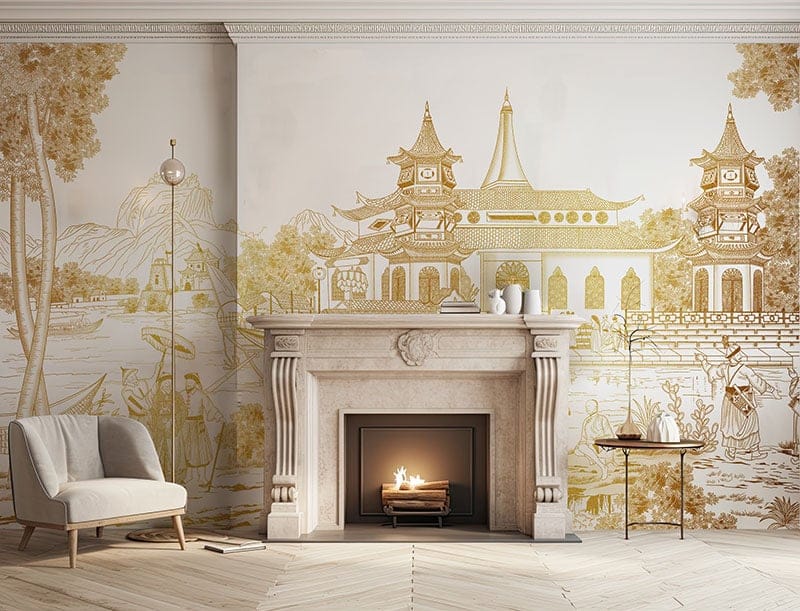 Chitram – Golden Charm Asian Chinoiserie Mural 3D Wallpaper, Customized