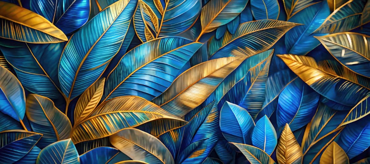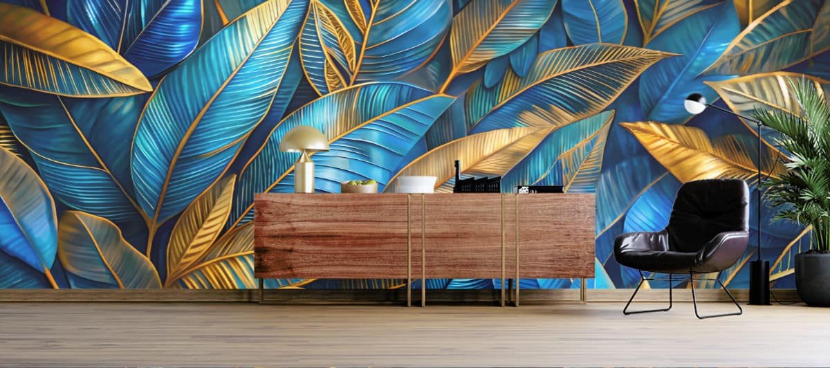 Blue and White 3d Floral Wallpaper for walls with leaves