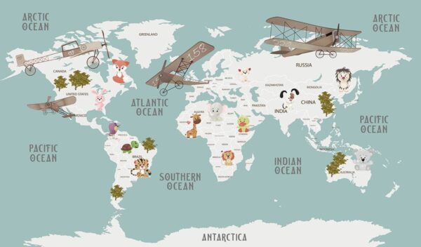 Be the first to review “Kids Room Wallpaper, World Map With Cartoon Animals 29” Cancel reply