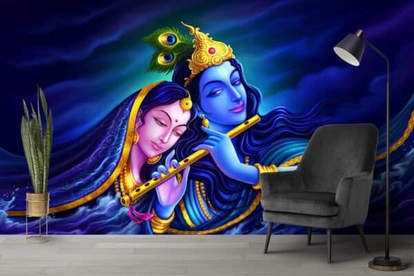Krishna Wallpaper for Wall, Blue Color Radha Krishna Wallpaper