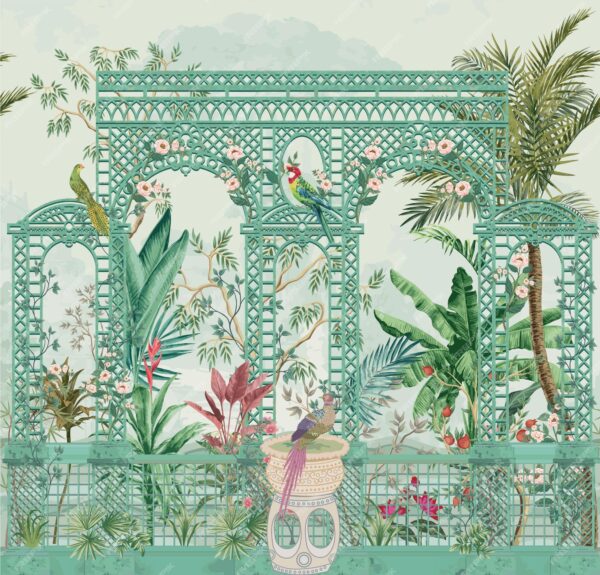 Be the first to review “mughal garden with bird parrot peacock plants tree palace illustration pattern wallpaper” Cancel reply