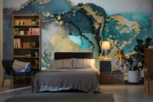Be the first to review “Teal Black Gold Alcohol Ink Fluid Art Wallpaper for Wall” Cancel reply