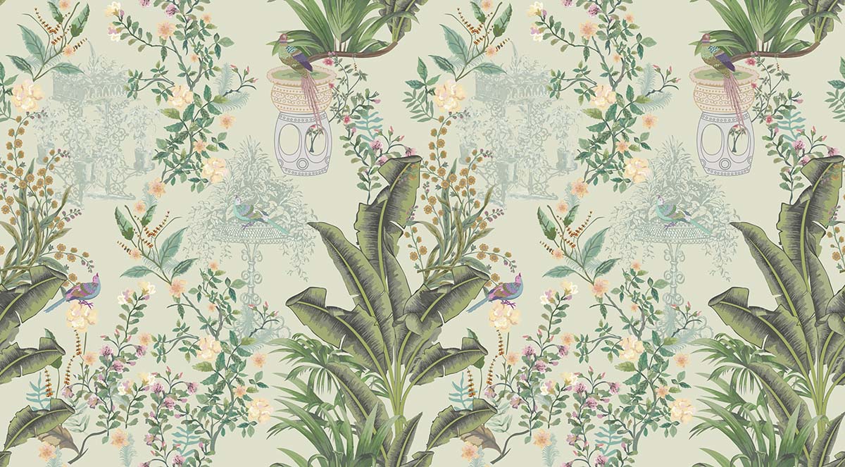 A-wallpaper with birds and plants