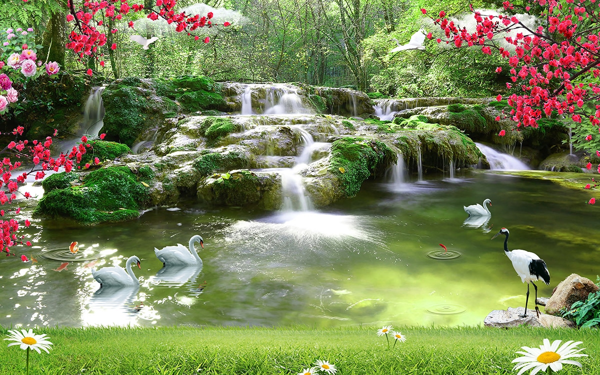 Be the first to review “Waterfall Wallpaper for Walls A waterfall with white swans” Cancel reply