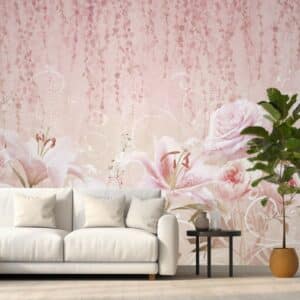 Beautiful Roses and Lilies Fresco Wallpaper Mural