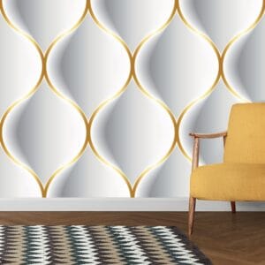 Luxurious Serene White and Gold Geometric Pattern Wallpaper