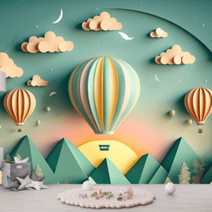 3D Kids Room Wallpaper With Mountains and Hot Air Balloons