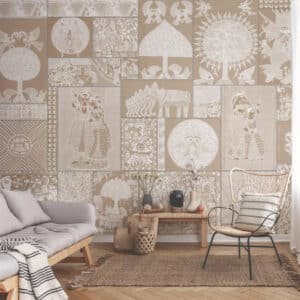 3D Geet Madhubani Wallpaper Clay Beige Color