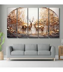 interior mural painting wall art decor wallpaper golden stag with dark gold forest trees deers