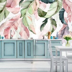 Tropical Leaves 3D Wallpaper Mural for Dinning Room