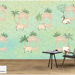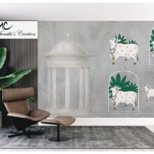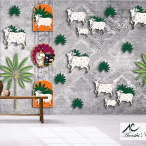 Indian Pichwai Cow Wallpaper, Ethnic Pichwai Art for Living Room