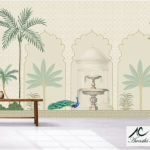 Chinoiseries Pattern with palm tree and Peacock Wallpaper Murals