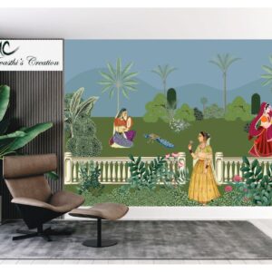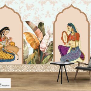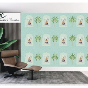 Chinoiseries Pattern with palm tree and lades Wallpaper Murals